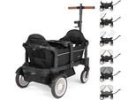 Der Bollerwagen kommt mit umfangreicher Ausrüstung, darunter ein abnehmbarer Tisch, Sonnenschutz, ein 3-Punkt-Gurt und viele weitere nützliche Funktionen, die für Sicherheit und Komfort sorgen.