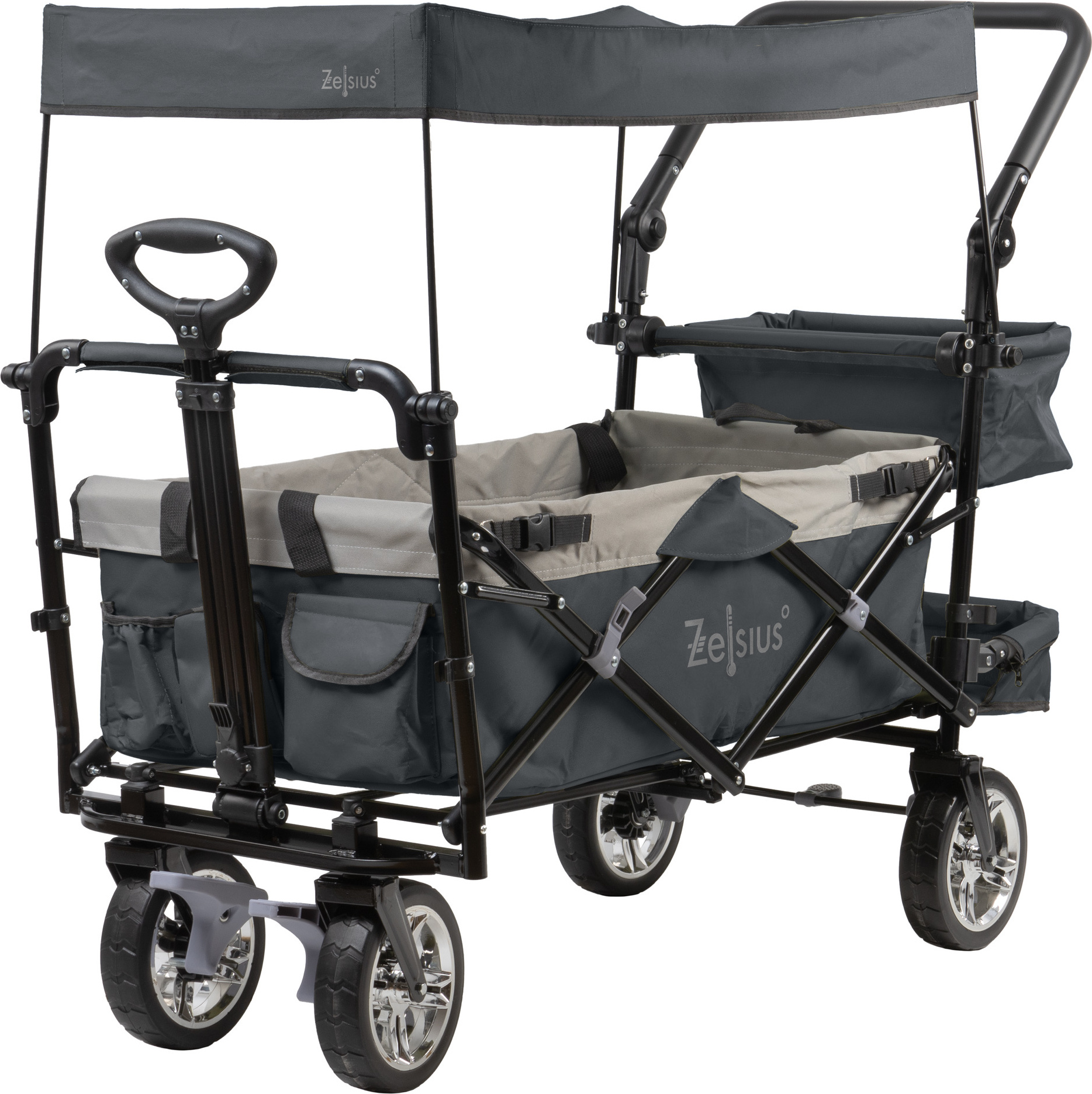 Der Zelsius Bollerwagen faltbar mit Dach ist Ihr idealer Partner für unvergessliche Ausflüge. Ob beim Camping, am Strand oder im Park, dieser Transportwagen bietet Ihnen die Flexibilität und den Komfort, den Sie sich wünschen.